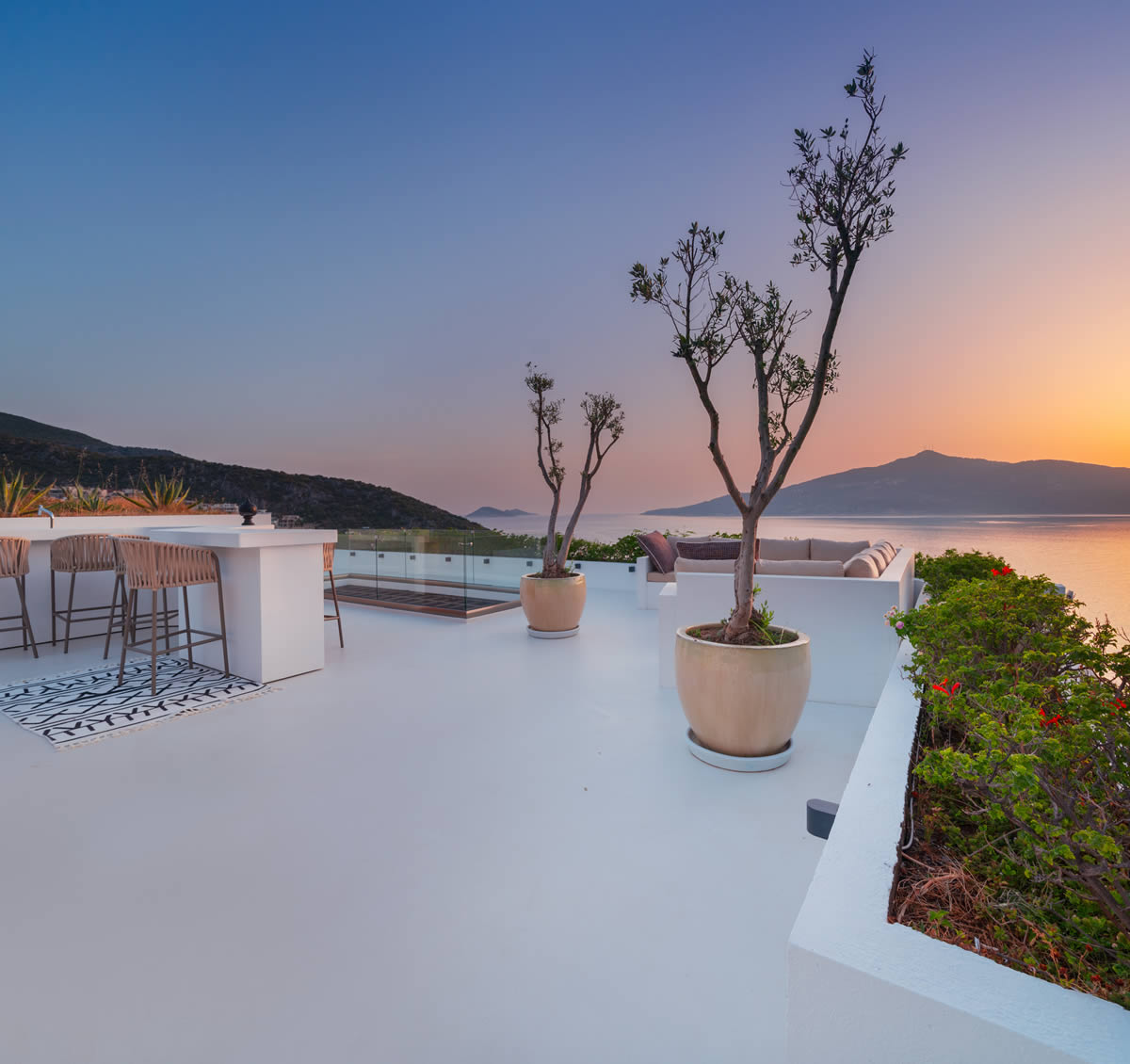 Set amongst an olive-clad cliffside, lapped by azure waters that, come nightfall, reflect the glow of blushed-pink sunsets, Su occupies an idyllic location on the ‘Turquise Coast’. Su is located above the award-winning Hotel Villa Mahal & Beach Club where guests can enjoy complementary entry, offering platforms cut into the cliffe-side for soaking up the sun & easy access to the clear waters which are great for snorkelling. The beach clubs laid-back waterside restaurant offers an extensive menu & delectable cocktails throughout the day & evening.