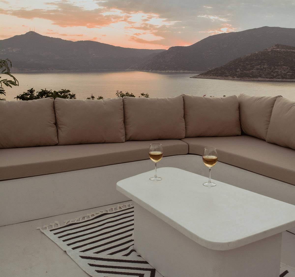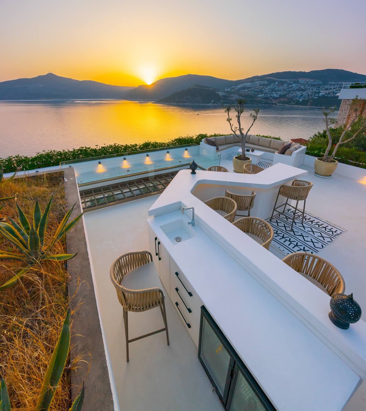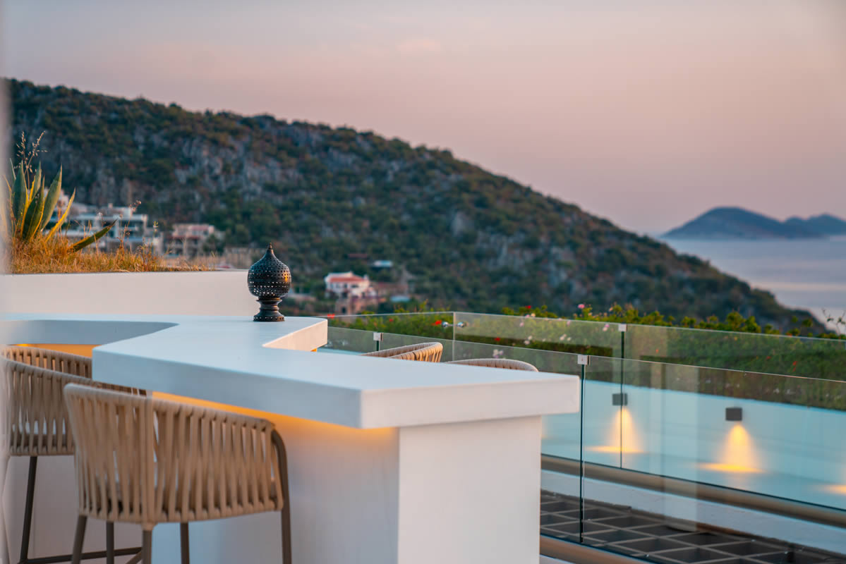 Su has been designed for families and couples to spend time together away from the usual holiday crowds. In the coolness of the morning breeze, the majestic procession of gulets heading out of the bay is a spectacle to be enjoyed over breakfast. After a dip in Su’s infinity pool, scents of barbecued bream waft through the warm air where a long lazy lunch in the cool, shaded outside dining area & kitchen awaits. Come afternoon, Su attracts a regular feathered visitor. Swallows gracefully glide through the skies, occasionally swooping below to take a sip from the pool to quench their thirst. As the sun begins to set behind the Taurus mountains, across the bay, Kalkan comes to life, projecting twinkling lights, that dance on the inky sea. Sundowners on Su’s roof terrace provides the perfect moment to toast the end of a beautiful day and welcome another night under the stars.